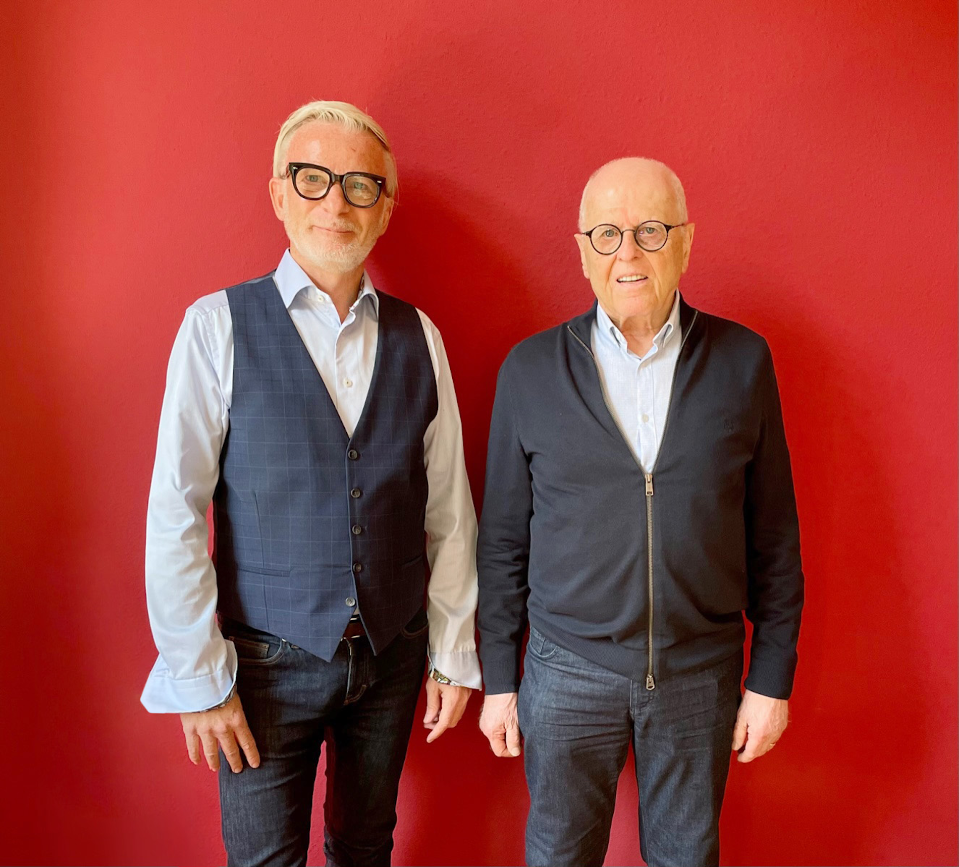 P.C. Baumann (rechts) gemeinsam mit Harald Grossmann (links) im März 2022 bei einem Besuch im Generalsekretariat der SGI in Basel.