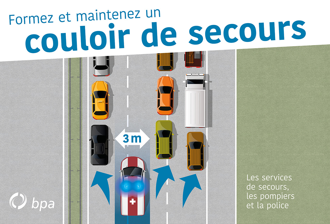 Le Conseil fédéral propose pour 2019 une amélioration décisive en matière de prévention des accidents sur la route. Il s’agit de responsabiliser davantage les automobilistes : selon la proposition du Conseil fédéral, un couloir de secours doit être formé sur les autoroutes et les routes à plusieurs voies. La règle simple du « gauche vers la gauche – droite vers la droite » et ce, avant même que le bouchon ne se forme, s’appliquera lorsque les véhicules rouleront au pas. Les organisations de secours suisses et l’Interassociation de sauvetage IAS saluent la décision du Conseil fédéral en faveur de laquelle elles se sont engagées activement ensemble. Les lieux d’accidents sur les autoroutes devront à l’avenir être ralliés plus rapidement grâce à la formation de couloirs de secours, afin de pouvoir aider les personnes concernées encore mieux et avec encore plus d’efficacité.